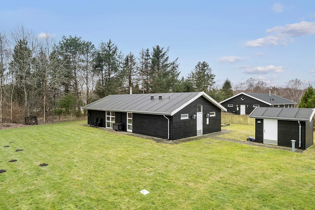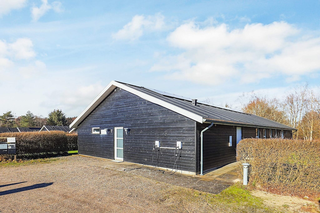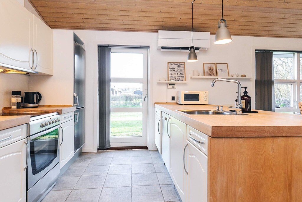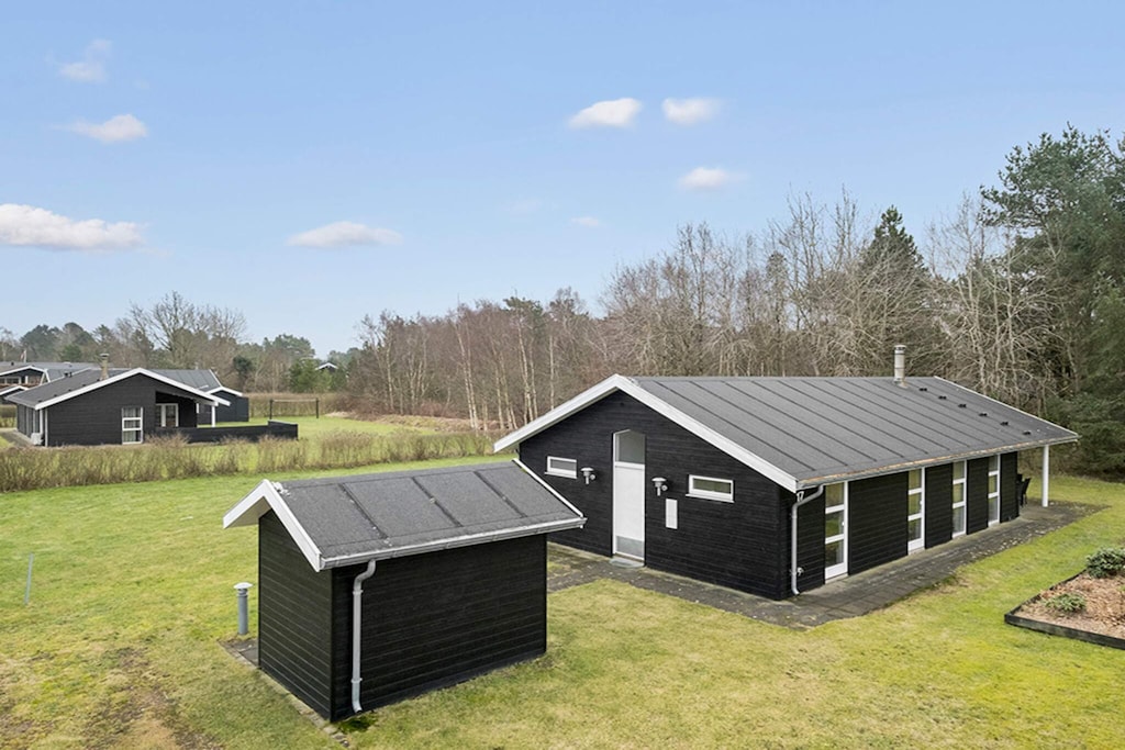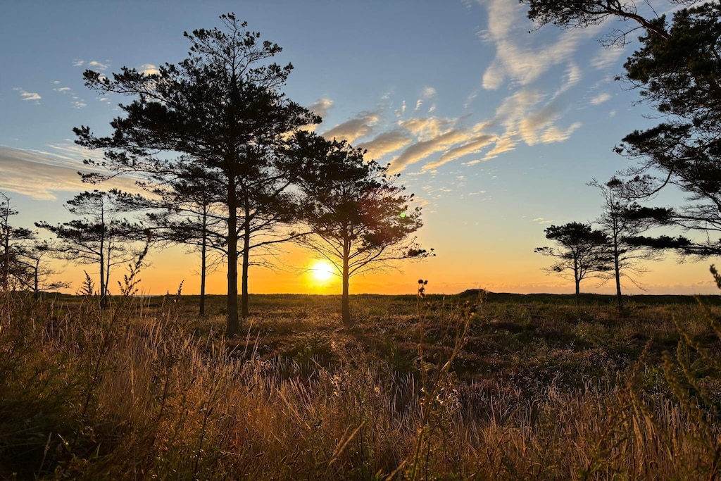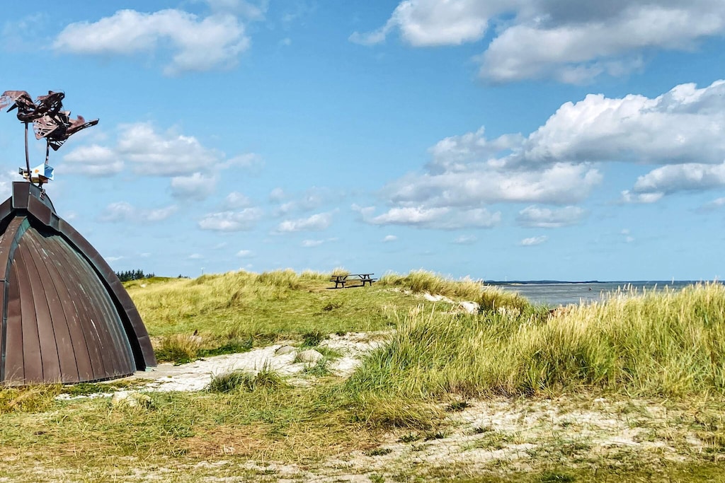 La casa se encuentra en el pueblo vacacional de Hou, en el norte de Jutlandia, rodeada de un hermoso entorno natural, a poca distancia de la más hermosa playa de arena y del acogedor entorno portuario que ofrece Hou.