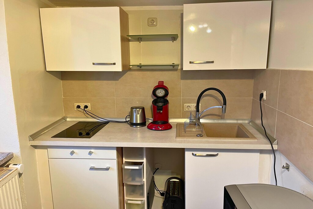 Ubicado en la vibrante e histórica ciudad de Tréveris, este cómodo apartamento es ideal para dos personas que buscan una estancia relajante y bien comunicada. El acogedor salón-comedor cuenta con un sofá cama individual, un televisor de pantalla plana, una mesa de comedor y una acogedora zona de estar, creando un espacio acogedor para relajarse después de un día de turismo. La cocina abierta está equipada con todo lo esencial, incluyendo horno, cafetera, microondas, nevera y hervidor eléctrico, ideal para preparar comidas durante su estancia.