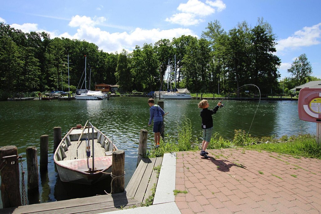 Actividades cercanas: Disfrute de una excursión de pesca guiada o un crucero en cúter, navegue en uno de los barcos de pasajeros o explore el lago en canoa: ¡las opciones son increíblemente diversas! Quienes prefieran no mojarse los pies pueden hacer un recorrido por la ciudad en el pequeño tren de Plau o descubrir la belleza del paisaje durante un paseo en bicicleta o en carruaje. Los más deportistas pueden poner a prueba sus habilidades en el parque de escalada. Sugerencias de excursión: Santuario de Osos de Müritz, Jardín Wangeliner y Almacén de Arte de Lübz.