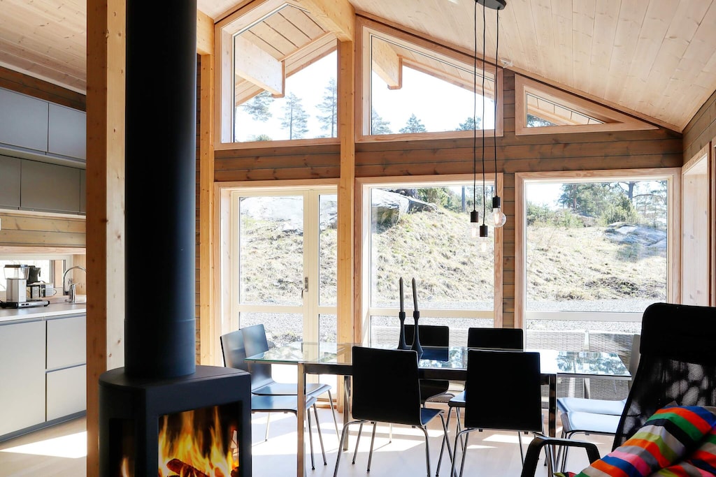 Cottage with a view of the beautiful lake Skarvannet. Down by the water, a small boat is waiting for you, which will provide unforgettable fishing experiences and boat trips. Bathing beach not far from the cottage. The cabin is ideal for a family holiday or a fishing holiday with friends. The boat is included in the price. The cabin is located in a cabin field surrounded by beautiful nature. 3 bedrooms and a loft with extra beds. Open kitchen/living room, bathroom with shower. Free internet and TV. Extra freezer in the shed. This is the place to enjoy life; relax, swim, and watch the children play. Enjoy breakfast with honey from a neighborhood farm shop and end the day with a barbecue on the terrace in the evening sun- The Øysang ferry is approx. 3 km away and takes you to the village of Risør with several festivals and events. In the summer, there are concerts on Stangholmen, a small island in front of the town. At Øysang, you can rent a boat to explore the fjord on your own or go on exciting fishing trips on the lake. At Jegertunet holiday center, 5 km away, there is a heated outdoor swimming pool (for a fee), restaurant, kiosk, and interior design shop as well as tennis courts and a playground. At Stabbestad, 24 km away, there is a spa hotel and golf course as well as a mini-golf facility, a beach club, harbor pool and kayak rental on the fjord. We recommend a visit to Kragerø, towns and Tvedestrand. “The Little Zoo on Brokeland Heia with Norway's largest rainforest is not far away (24 km). Great cabin for holidays also in winter with the possibility of ice fishing on the lake or the fjord, and cross-country skiing on the illuminated track at Søndeled. Visit Vegårshei Ski and Activity Center (33 km) with ski lift and toboggan run, or just enjoy the lovely winter landscape.