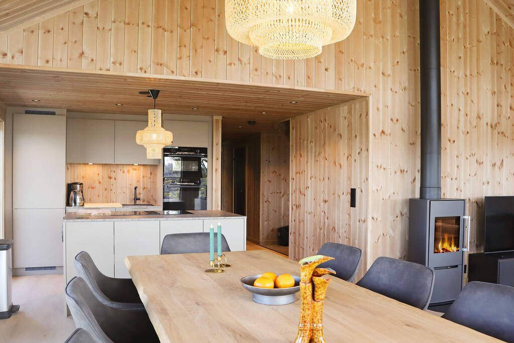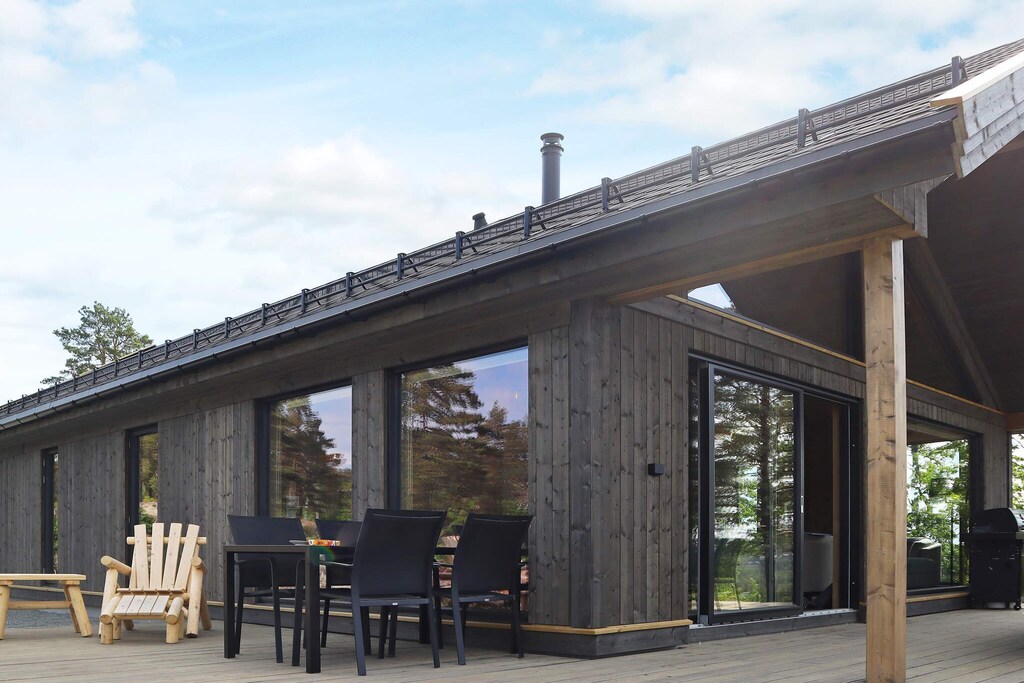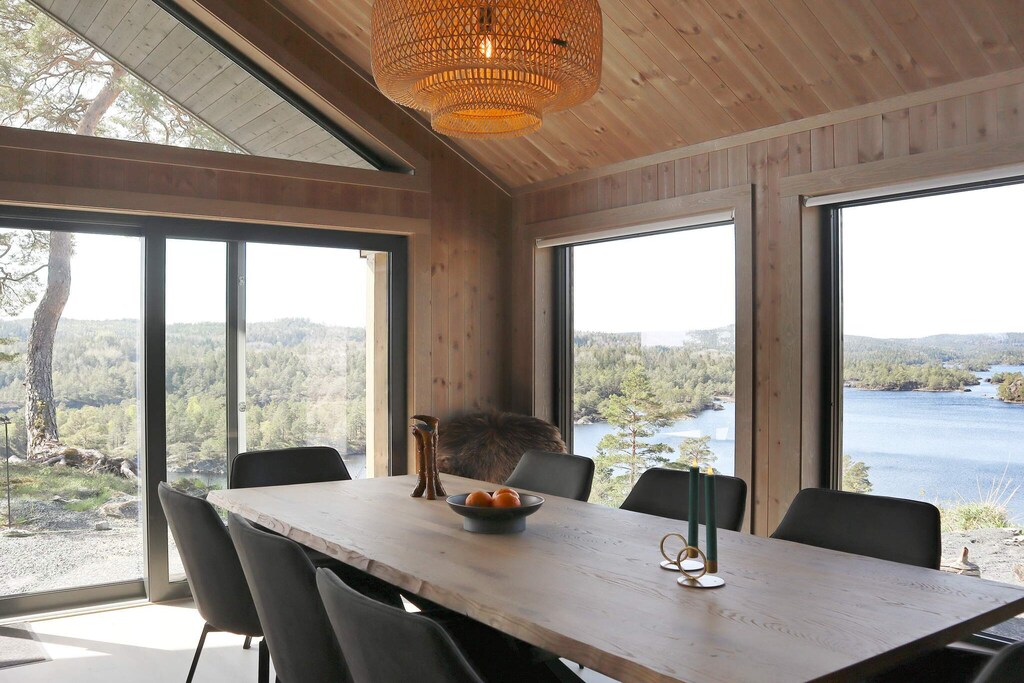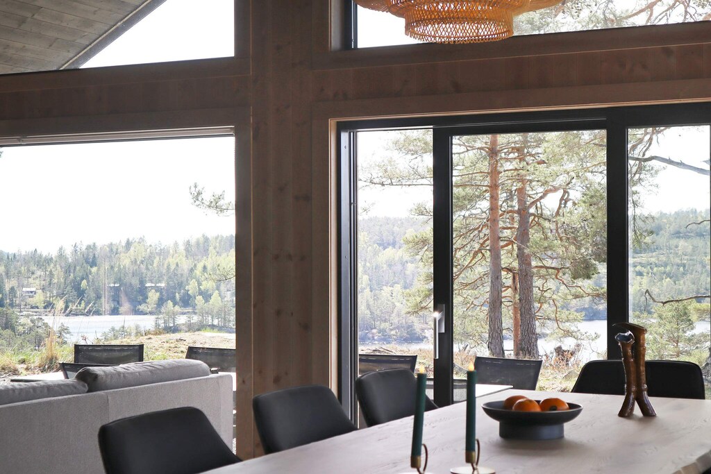 Great cabin with a panoramic view of the beautiful lake Skarvannet. New cabin with sauna and room for 10 people. The cabin has 4 bedrooms on the ground floor as well as 1 bedroom with several beds and a playroom with TV on the first floor. The bedroom upstairs (forst floor) has sloping walls and a maximum ceiling height of 195cm. There is an open kitchen/living room with a cooking island and a fantastic panoramic view of the lake. Living room with fireplace and TV. Two bathrooms with rain shower and a guest toilet. Electric car charger available. Free internet. The comfortable cabin is quietly located in the Norwegian countryside at the top of a cabin field, not far from the sea. On the large terrace you can enjoy the sun all day. The cabin is perfect for extended family or friends. There is a beach at Skarvannet not far from the cabin where you can relax, swim, and watch the children play. The Øysang ferry, 3 km away, takes you safely to Risør, the white town by the Skagerak with many festivals and events. In the summer, there are concerts on Stangholmen, a small island in front of the town. Try a boat taxi to get there! At Øysang, you can also hire a boat to explore the fjord and for exciting fishing trips. In winter, there are great opportunities for ice skating and ice fishing both on Skarvannet and the fjord, and cross-country skiing on the illuminated track at Søndeled. Feel free to visit Vegårshei Ski and Activity Center (33 km) with ski lift and toboggan run, or just enjoy the lovely winter landscape. At Jegertunet holiday center (5 km) there is a restaurant, kiosk, and an interior shop as well as tennis courts and a large playground. At Stabbestad (24 km) there is a spa hotel and golf course as well as mini golf facilities, and also a beach club, harbor pool, and kayak hire on the fjord. “The Little Zoo” on Brokeland Heia with Norway's largest rainforest is not far away (24 km). A visit to the pleasant towns of Kragerø in the north and Tvedestrand in the south is also recommended.