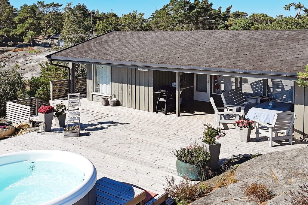 Cozy cottage with whirlpool and 4 bedrooms, sunny location with sea view and possibility to rent a boat. Do you want to enjoy the summer in scenic surroundings by the coast? With this cozy cabin you can do just that. Here you live surrounded by several individual cabins, unashamedly and in a beautiful location on the rocky cliffs by the sea. The cabin is located on a sunny plot with a sea view and a short distance to both fishing and swimming opportunities. On the terrace there is a hot tub that you can sink into after delicious day trips. The cabin consists of three floors. Directly at the entrance is the TV lounge. On the second floor there are 4 bedrooms, each with a double bed. Inside the house there is a bathroom with WC and washbasin. Outside from the terrace there is an entrance to a bathroom with a shower, and a room with a urinal. In addition, there is an outdoor shower under the roof. There is a terrace with exit from the kitchen and a terrace with exit from the living room where you can enjoy lovely days outside, have breakfast or barbecue. Possibility of boat rental close by or by contacting the owner, depending on whether the boat is available in the relevant period. For excursions, it is recommended to take a trip to the charming wooden town of Risør. There you can walk in cozy streets with the characteristic white wooden houses, visit the saltwater aquarium and have a good dinner down in the harbor area. At Stabbestad, 12 km away, there is a golf course, mini golf facility, spa hotel, beach club and sea bath as well as a ferry to beautiful Kragerø, a pearl among the coastal towns. Here there are cafes, bars and restaurants close together in the streets and harbor area. For other experiences, it is only half an hour's drive to "Den lille Dyrehage" at Brokeland Heia with its famous rainforest.