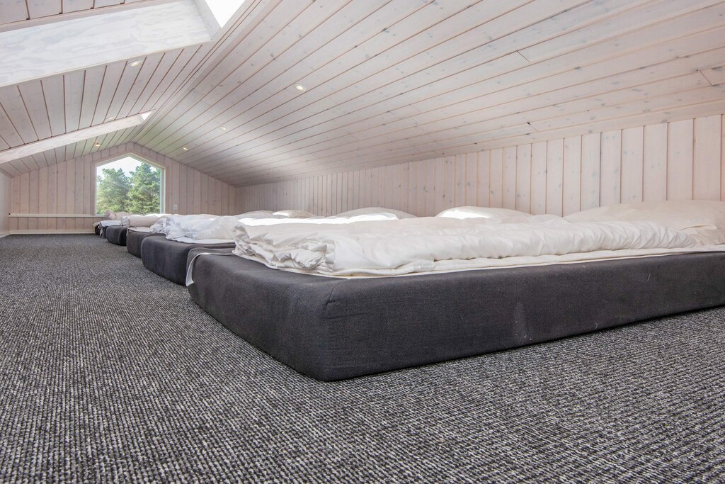 Esta moderna casa de vacaciones está perfectamente equipada para familias numerosas, con cinco dormitorios y un amplio altillo con seis camas que da al salón. Dispone de tres baños con ducha, uno de ellos en la sala de la piscina.