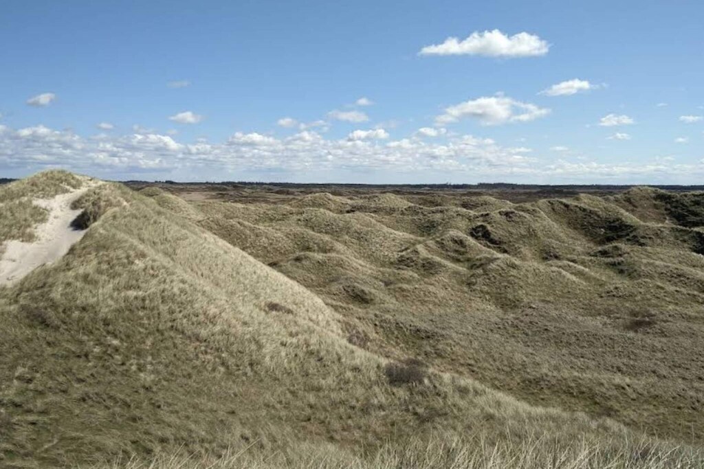 Todas las habitaciones son luminosas y están amuebladas con gusto, combinando un estilo moderno con el acogedor encanto escandinavo. La casa incluye internet de alta velocidad (100/100 Mbit) y un Chromecast para ver sus propios servicios de televisión, garantizando entretenimiento para todas las edades. Desde el salón, disfrute de las vistas a las dunas circundantes y al paisaje natural, y en los días más frescos, relájese junto al calor de la estufa de leña. Además, una bomba de calor de bajo consumo proporciona temperaturas agradables durante todo el año.