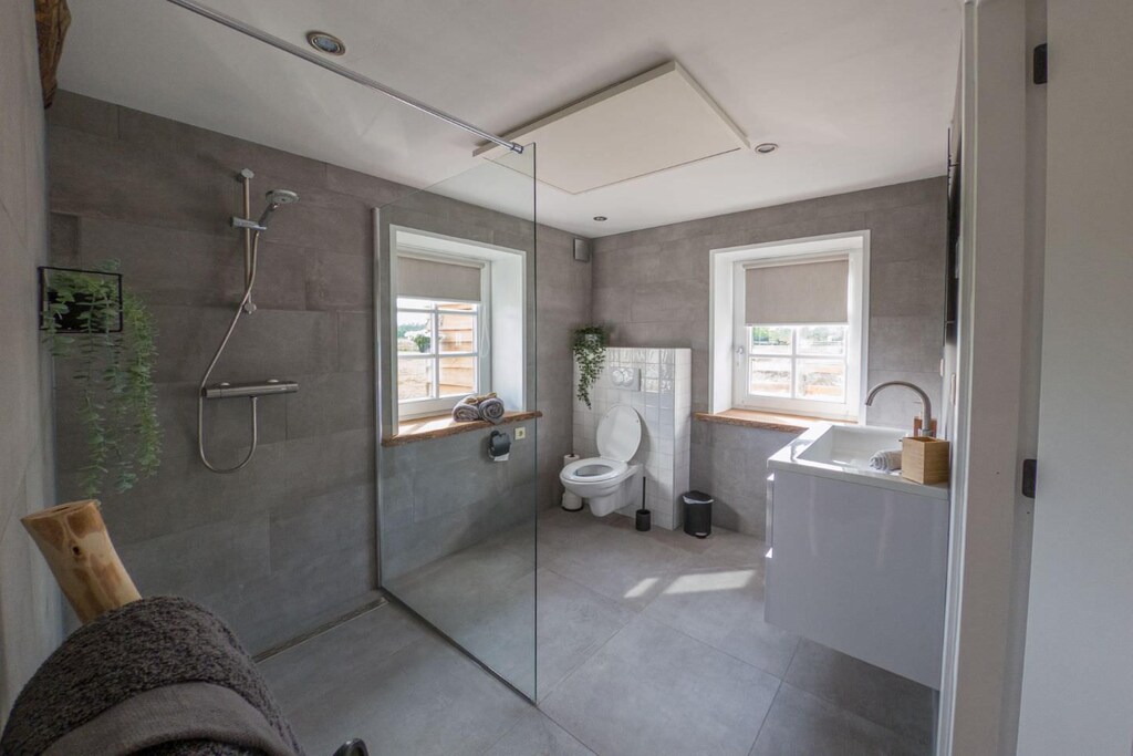 Este establo bellamente reformado en Sint-Oedenrode ofrece una combinación única de encanto rústico y confort moderno. Diseñado como dos apartamentos independientes que se pueden unir fácilmente mediante una puerta corredera, ofrece un alojamiento versátil, ideal para grupos que buscan privacidad y convivencia. Las amplias salas de estar son perfectas para relajarse, mientras que las cocinas totalmente equipadas le invitan a preparar sus comidas favoritas. En el exterior, los encantadores jardines con vallas de madera ajustables crean un remanso de paz donde todos pueden relajarse y disfrutar del aire fresco en plena naturaleza.