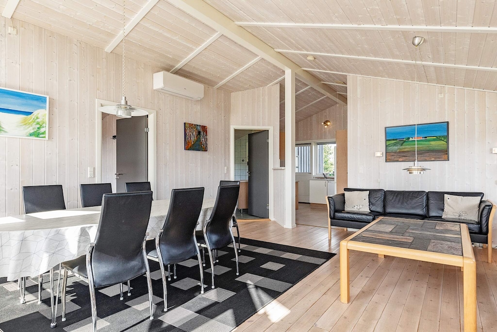 Casa de vacaciones con bañera de hidromasaje y sauna ubicada en Spodsbjerg Strand. Los grandes ventanales de la casa proporcionan una increíble cantidad de luz. Tres dormitorios y baño con bañera de hidromasaje para 2 personas, sauna y suelo radiante. La sala de estar también está equipada con TV, reproductor de DVD, radio DAB y un sistema de TV digital. Salón / comedor combinado amueblado con muebles de la mejor calidad danesa. Desde el salón hay acceso directo a la terraza. El departamento de cocina está ricamente equipado con i.a. vitrocerámica y microondas. Gran terraza descubierta / cubierta con muebles de jardín para 6 personas. La casa se encuentra a aprox. A 400 m de Spodsbjerg Strand, que ofrece una hermosa playa para niños con muchas oportunidades para bucear, windsurf, pesca, recolección de ámbar y un agradable baño en la playa de arena poco profunda. En el centro de Langeland encontrará Spodsbjerg Strand, que se caracteriza por un pequeño puerto acogedor. En la zona hay muchas oportunidades para las vacaciones. En un corto trayecto en coche se puede jugar al golf, visitar las numerosas y acogedoras tiendas de la granja, alquilar caballos en la temporada de verano o visitar algunos de los muchos sitios históricos en los que la zona es tan rica. También conduzca un poco hasta el castillo de Tranekær, que es uno de los castillos mejor conservados de Dinamarca. Además, el Castillo de Valdemar está a aprox. 15 min en coche de la casa. El Castillo de Valdemar es una de las atracciones turísticas más visitadas de Dinamarca. Las costas de Langeland ofrecen la mejor pesca de trucha marina de Dinamarca durante todo el año. Desde el puerto de Spodsbjerg hay buenas oportunidades para lanzar su propio barco o alquilar barcos con motor en Spodsbjerg. Rudkøbing está a poca distancia en coche de la casa. La ciudad ofrece muchas opciones de vacaciones con muchos restaurantes acogedores, supermercados y tiendas especializadas. Las pequeñas calles de Rudkøbing se caracterizan por el estilo antiguo y acogedor de los edificios de Funen con casas de entramado de madera, techos de paja, calles adoquinadas y malvas. Si quieres ir a una ciudad más grande, Svendborg está a aprox. 20 min en coche de la casa.
