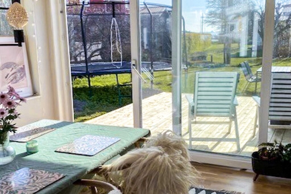 Welcome to Hällsvik – previously this was a small village with fishing as its main occupation, and even today you can feel the authentic atmosphere that characterizes the area. The location is truly unbeatable for anyone who wants to experience the beauty and pulse of Gothenburg. Only 20km to the entertainment city with good communication options via bus or car. Here you live within a bathrobe's distance of the beautiful coastline, with both a jetty, slide and bathing ladder for a morning dip. It is a strategic location for exploring the surrounding nature. Also take the opportunity to visit the nearby islands of Öckerö and Hönö, which you can reach via a free car ferry only 4 km away. Parking is available next to the entrance. You share the plot with the homeowner and have your own cozy terrace. From the porch you enter the spacious hall. To the left is the fully equipped kitchen of 18 m2. Straight ahead from the hall is the spacious living room (40 m2) which continues into the dining room (12 m2) with a lovely sea view and the terrace outside. A bathroom with shower and bathtub and a guest toilet. There are two bedrooms of 12-14 m2 with comfortable double beds of 180 cm in each room. In one bedroom there is an additional single bed, which can also be placed in the part of the living room with a screen wall if desired. The washing machine is in a separate room next to the kitchen and is shared with the owner. Bed linen is included in the rent. Please note that this accommodation is for families, it's not rented out to groups, parties and celebrations. Welcome to a homely and child-friendly house with a seaside location and proximity to all the pleasures of Gothenburg!