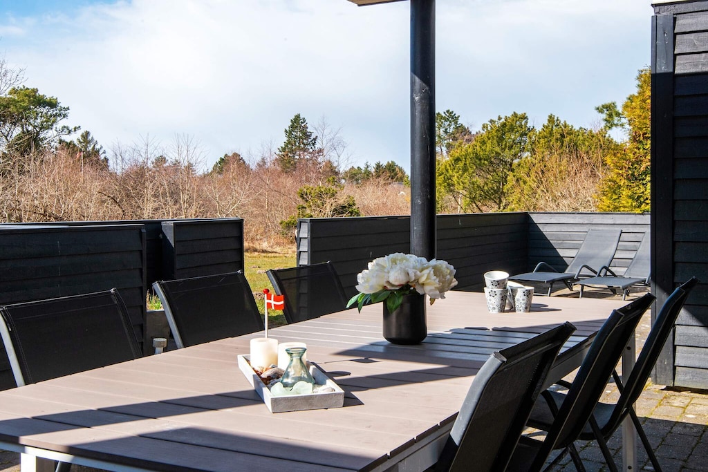La casa cuenta con varias terrazas con cómodos muebles de jardín, cuatro tumbonas y una barbacoa de gas donde podrá disfrutar de una cena mientras contempla la puesta de sol. El jardín ofrece amplias oportunidades para disfrutar de sus vacaciones en paz y tranquilidad, además de espacio para jugar. También hay una hoguera donde toda la familia puede divertirse horneando pan en un palo o asando nubes.