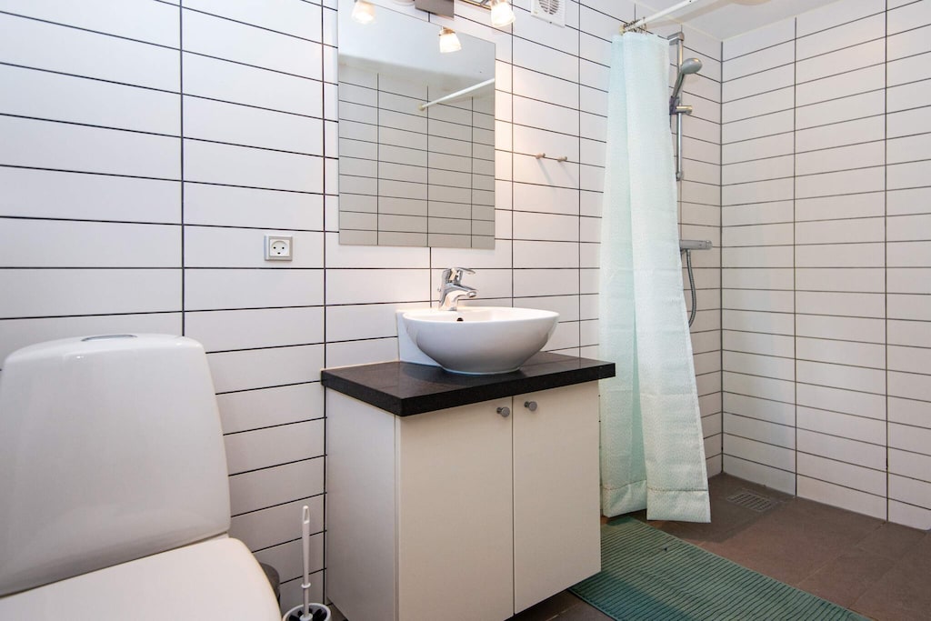 El baño incluye bañera de hidromasaje para 2 personas, ducha y calefacción por suelo radiante. El baño de invitados también incluye ducha.