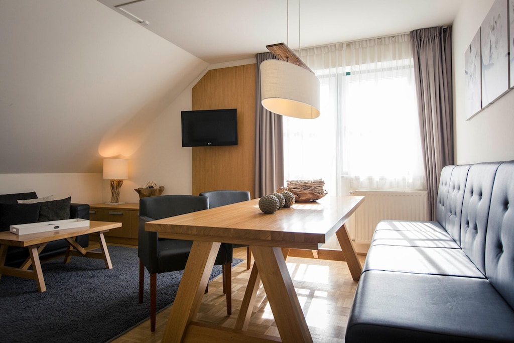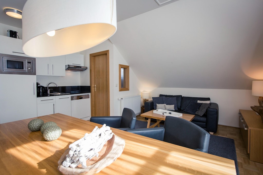El apartamento Edelweiss cuenta con 1 o 2 dormitorios, donde puede elegir entre una cómoda cama doble o literas, acomodando familias o grupos con facilidad. El moderno baño está equipado con ducha o bañera, satisfaciendo sus preferencias de relajación. La cocina abierta es una delicia culinaria, completamente equipada con todo lo que necesita para una estadía sin complicaciones. Incluye una placa vitrocerámica, microondas, lavavajillas, refrigerador con congelador, así como electrodomésticos esenciales como tostadora, hervidor y cafetera. A su llegada, se le proporcionará un set de inicio con pastillas para lavavajillas, líquido lavavajillas, esponja, bolsas de basura, limpiadores y paños de cocina para garantizar un comienzo sin problemas de su estadía. Manténgase conectado con Wi-Fi gratuito y relájese con la televisión por satélite después de una Día de exploración.