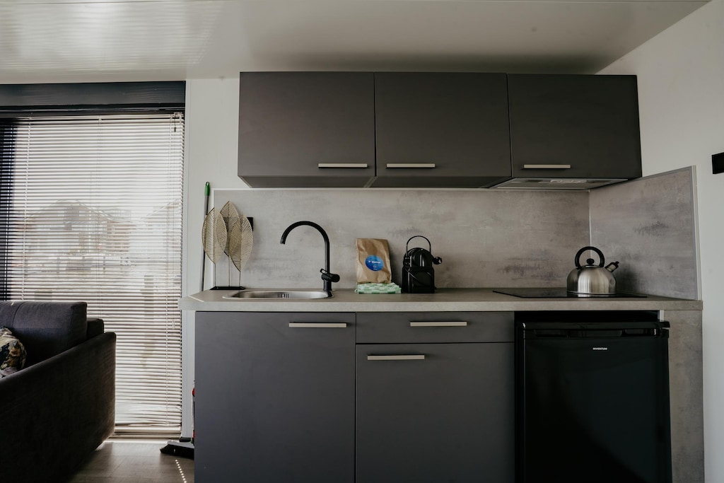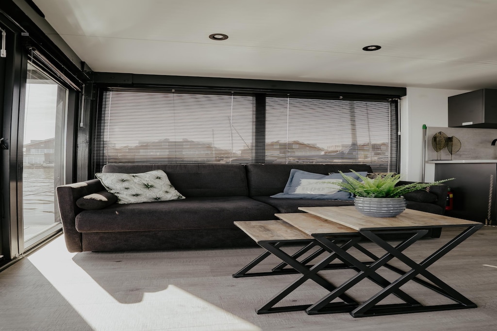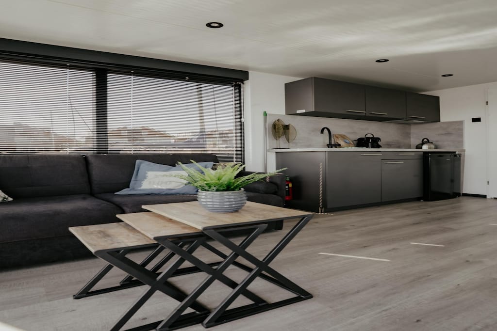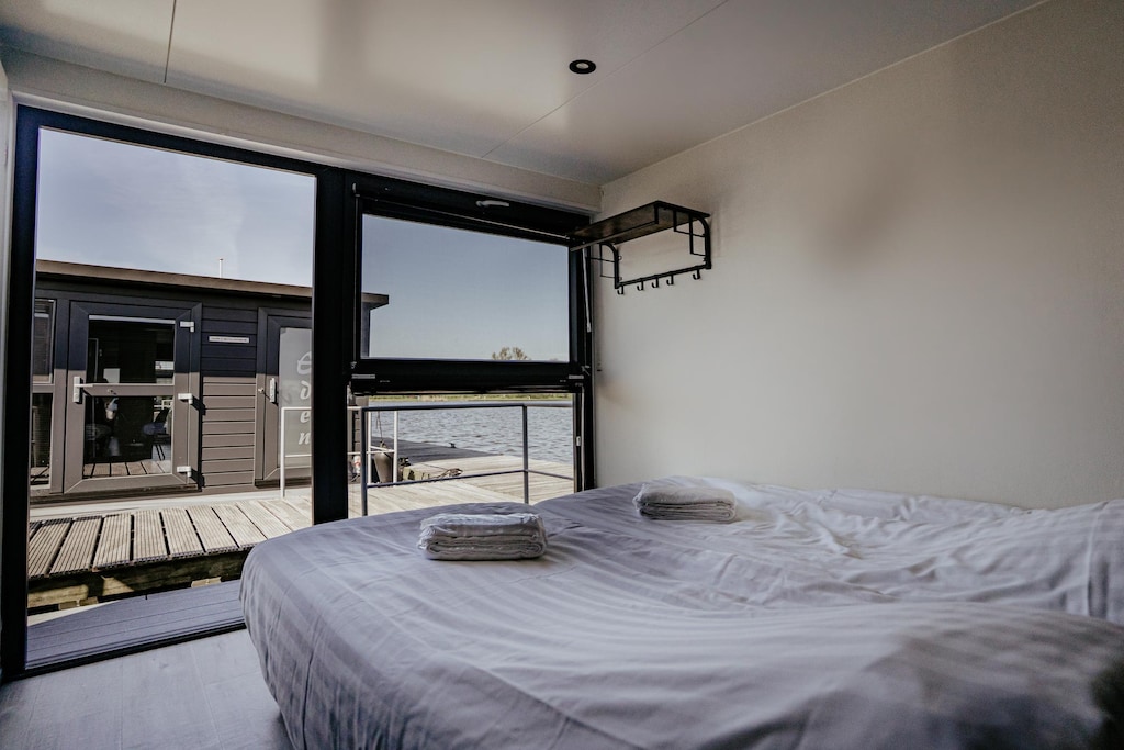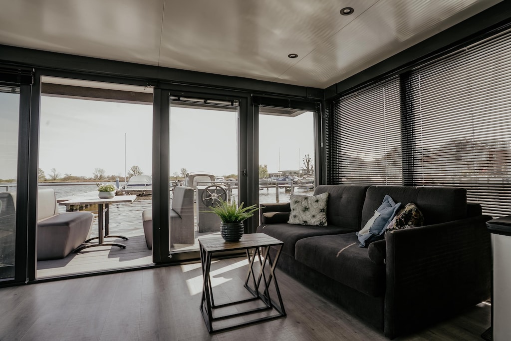 Despierte con el suave vaivén del agua y las vistas panorámicas del Uitgeestermeer desde su cabaña privada en el puerto. Amarrada al final del puerto deportivo para máxima tranquilidad, esta moderna casa flotante ofrece un remanso de paz con la comodidad adicional del aire acondicionado y un mobiliario elegante. Sus amplios ventanales dejan entrar la luz del sol, mientras que la acogedora terraza es el lugar perfecto para disfrutar de su café matutino o de una copa al atardecer.