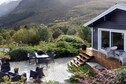 Die Lage des Hauses und die schöne Terrasse mit Blick auf den Fjord und der Kamin,