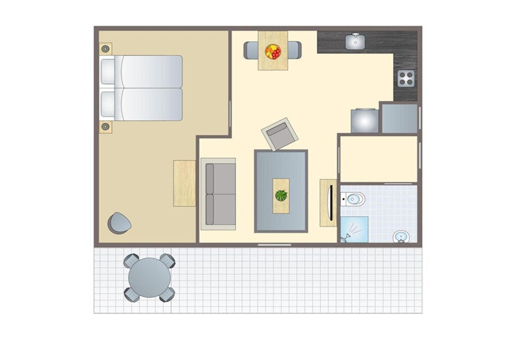 El bungalow de una sola planta está bien cuidado y cómodamente amueblado; ¡pequeño pero con un diseño perfecto! Cuenta con una sala de estar con TV y una cocina americana equipada con microondas y lavavajillas. El dormitorio tiene dos camas individuales con somier dispuestas en configuración doble. El baño dispone de ducha y WC.
