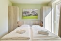 La casa vacacional, amueblada de forma elegante y cómoda, se distribuye en dos plantas. En la planta baja, encontrará un salón con TV y una cocina americana con microondas y lavavajillas, entre otros artículos. Hay un dormitorio con baño privado y ducha a ras de suelo. Hay un aseo independiente en el recibidor. En la primera planta encontrará el segundo dormitorio con TV y un segundo baño con bañera, ducha e inodoro. Los dormitorios tienen dos camas individuales que se convierten en una cama doble.