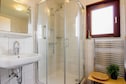 El baño está ubicado en la planta baja y tiene ducha y lavabo. También hay un inodoro separado en la planta baja. Hay