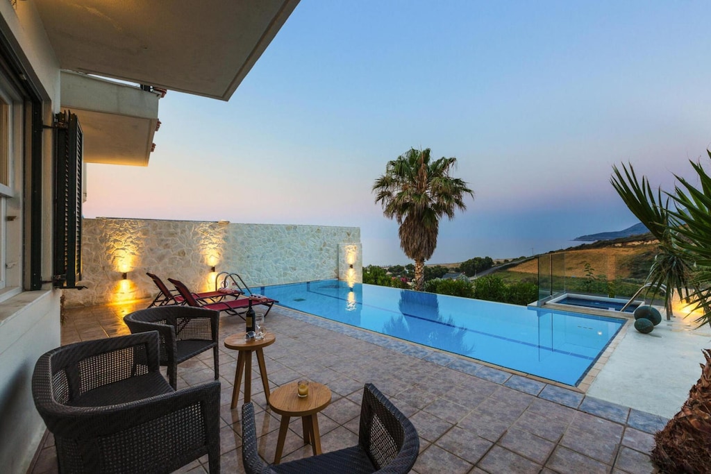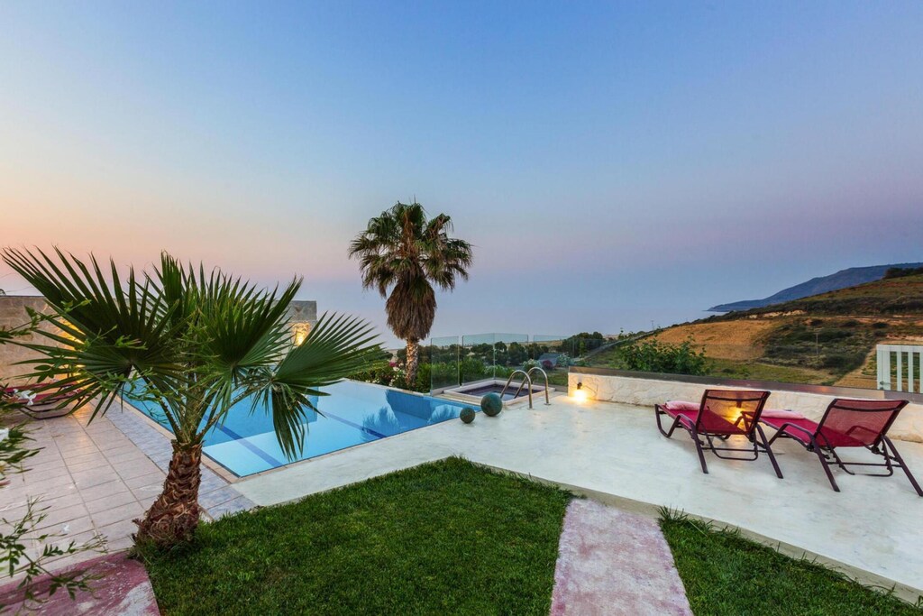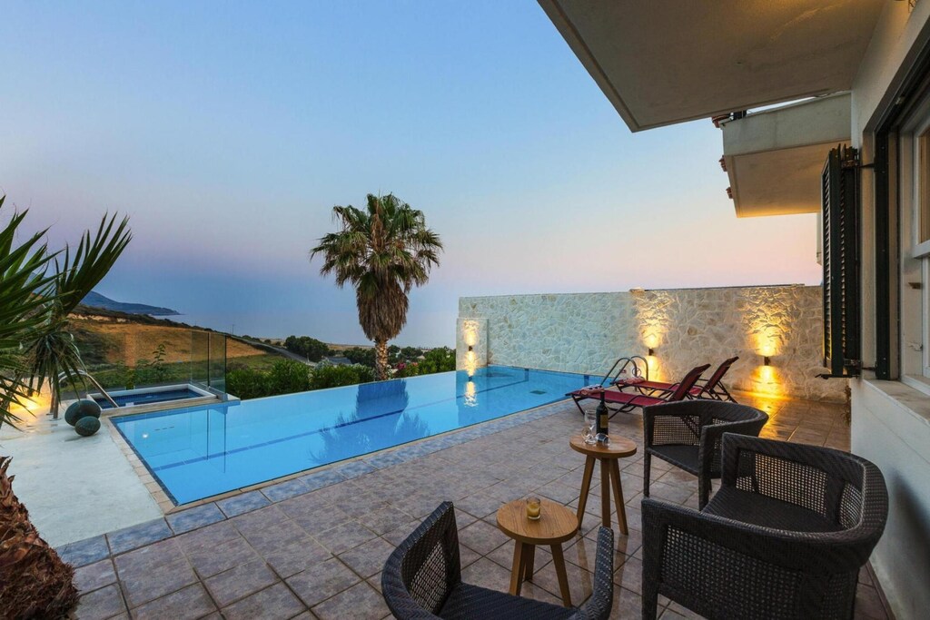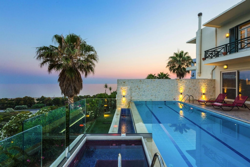 Dos cómodas casas adosadas en una ubicación ideal a solo 200 metros de la larga playa de arena que se extiende hasta Georgioupolis. Debido a su ubicación en la cima de una colina, puede disfrutar de una magnífica vista del mar Egeo. Las casas tienen cada una una piscina privada con solárium y parrilla para asados. Durante los meses de verano, numerosos bares y tabernas están abiertos a lo largo de la playa. En los alrededores, muchos pueblos tradicionales le invitan a explorar.