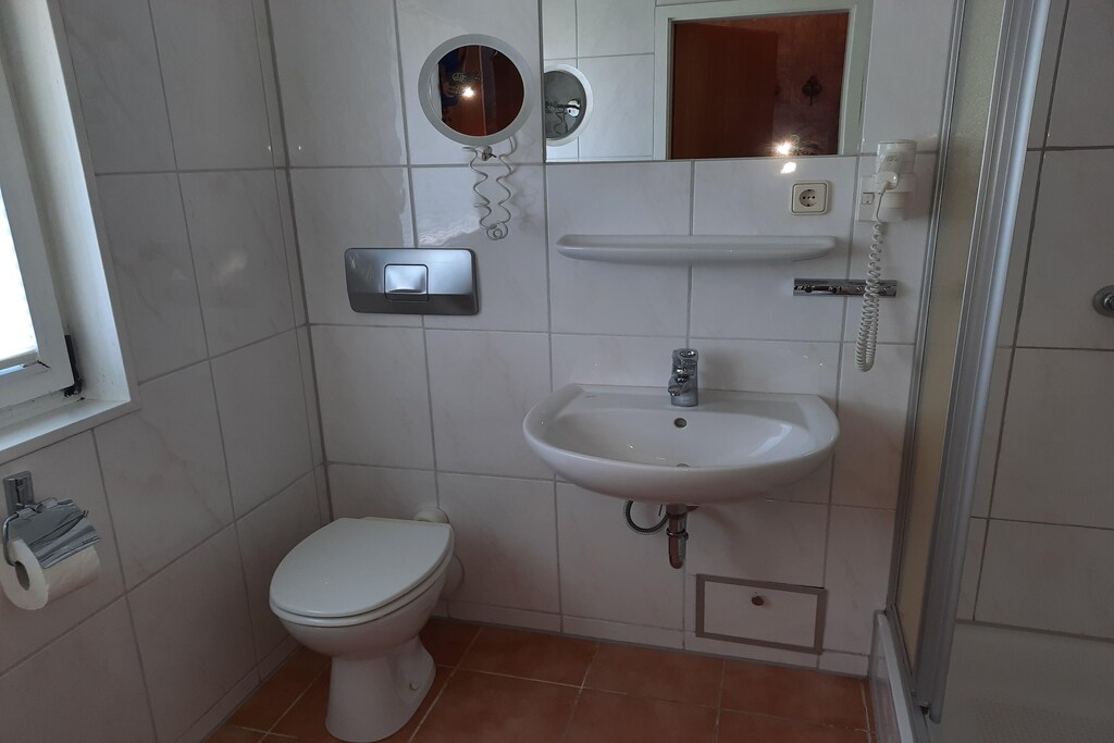 Het huisje op het vakantiepark in Waldbrunn is, zoals ik al veel las, inderdaad gedateerd maar wel brandschoon. Het is van alle gemakken voorzien, ook in de keuken is echt alles wat je maar nodig kan hebben. Er mist wel een waterkoker, die hebben we zelf gekocht omdat het exemplaar thuis toch aan vervanging toe was. Het vakantiepark is heel rustig, je hoort eigenlijk nauwelijks iets. Dat hadden we niet verwacht, het woord "vakantiepark" gaat hand in hand met rumoer. Maar nee dus gelukkig. De huisjes zijn zo geplaatst dat je privacy hebt op je terrasje (terrasjes nooit naar elkaar gericht). Het bed is geweldig. Er zijn rolluiken buiten, wat erg prettig is met de warmte van deze week. Ook zijn er horren, we zijn nog geen vlieg of mug tegen gekomen. In de omgeving is geloof ik niet heel veel bruisends te doen. Maar, naarstig gezocht naar bruisends hebben we ook niet... We hebben elke dag gewandeld in de bergen, veel klimmen en zo begeef je je steeds op de meest sprookjesachtige plekken. Er is een meer in de buurt waar je kan zwemmen, vanaf die plek kan je ook vele wandelingen maken. Dus vooraf en nadien een frisse duik nemen kan goed. Wij zijn zeer tevreden over het huisje en over het vakantiepark in het algemeen. En de omgeving is ronduit "zauberhaft"!