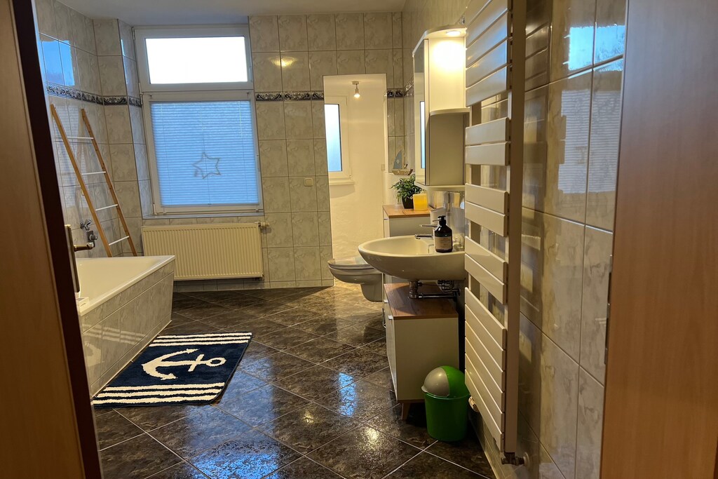 Ubicado en la tercera planta de un tranquilo edificio en Zwickau, este apartamento de varias plantas ofrece una estancia relajada para familias o grupos pequeños. El acogedor salón cuenta con TV de pantalla plana vía satélite y zona de estar, mientras que la cocina, totalmente equipada, incluye placa eléctrica de 4 fuegos, horno, microondas, frigorífico-congelador, hervidor de agua, tostadora, campana extractora y cafetera de filtro, ideal para comidas informales. El moderno baño incluye bañera, ducha, lavabo, inodoro y secador de pelo.